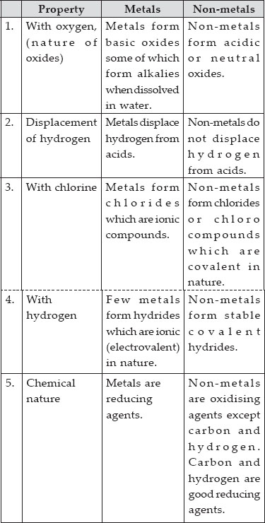 Differentiate between metals and non-metals on the basis of chemical properties?