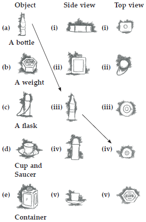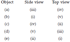 For each of the given solid, the two views are given. Match for each solid the corresponding top and front views. The first one is done for you.