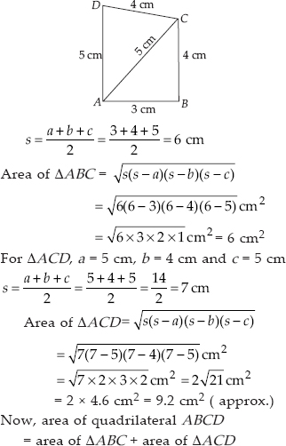 Find the area of a quadrilateral ABCD in which AB = 3 cm, BC = 4 cm, CD = 4 cm, DA = 5 cm and AC = 5 cm.