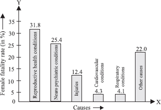 A survey conducted by an organisation for the cause of illness and death among the women between the ages 15 - 44 (in years) worldwide, found the following figures (in %):