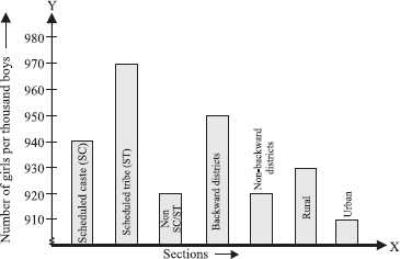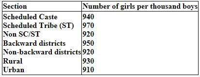 (ii) Number of girls (per thousand boys) are maximum in scheduled tribes whereas minimum in urban.
