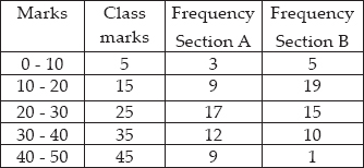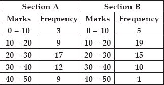 The following table gives the distribution of students of two sections according to the marks obtained by them.