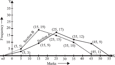 Represent the marks of the students of both the sections on the same graph by two frequency polygons. From the two polygons compare the performance of the two sections.