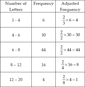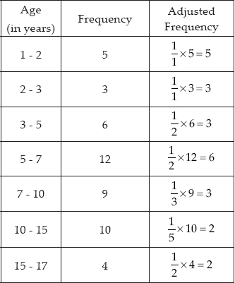 Here, the class sizes are different therefore, we calculate the adjusted frequencies corresponding to each rectangle. Adjusted frequency